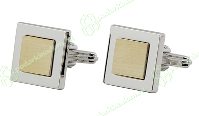 Квадратные запонки серебреного цвета с позолоченной серединой