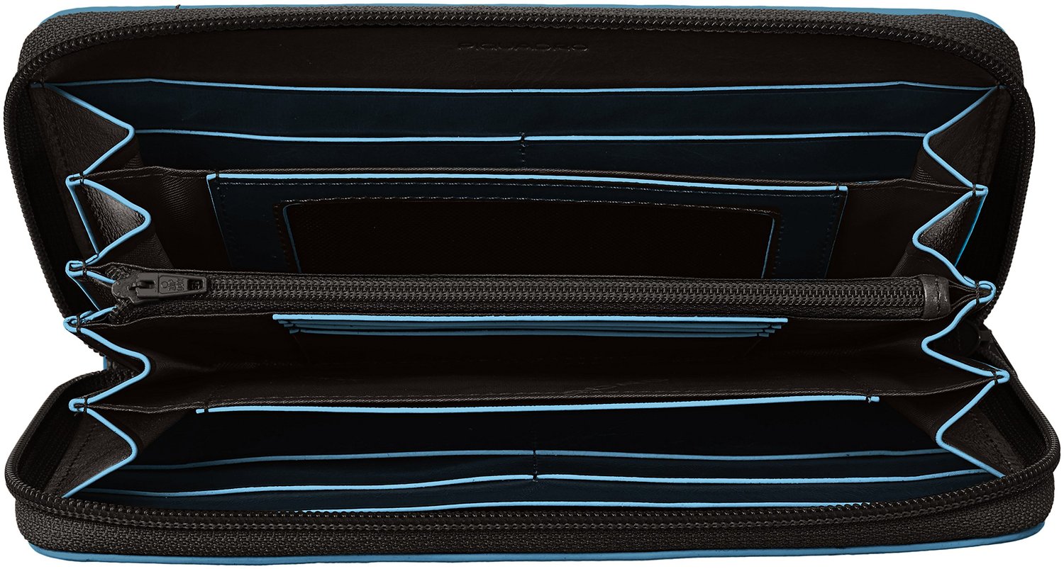 Внутри: 2 отделения для купюр, кармашек для монет на молнии, 12 отделений для визитных и кредитных карт.