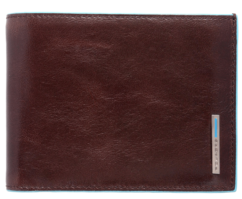 Портмоне имеет три секции: для документов, визиток, карт, два кармана для купюр и отдел для мелочи, закрывающийся на кнопку. С наружной стороны логотип Piquadro.