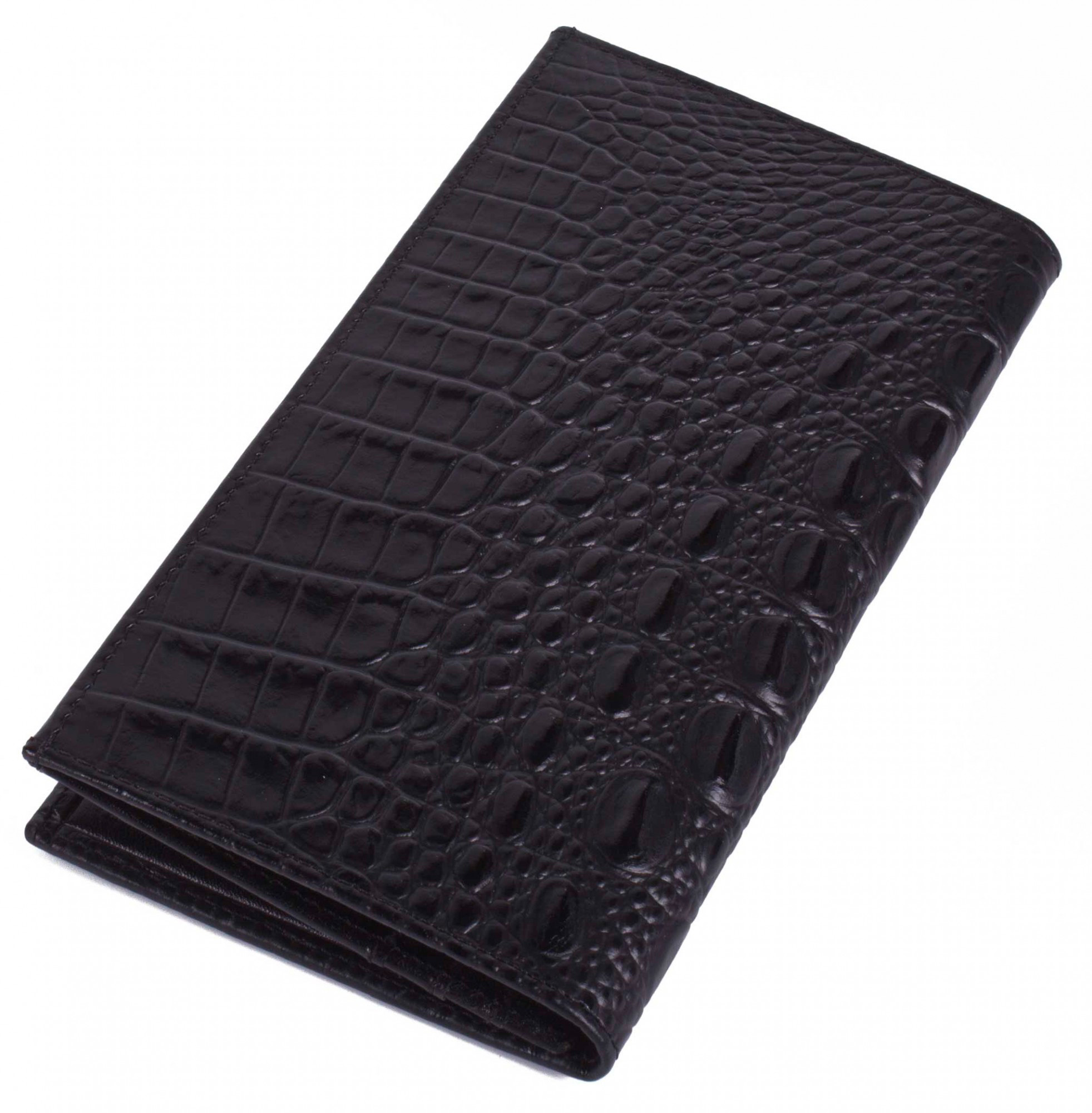 Классический мужской бумажник выполнен из натуральной телячьей кожи черного цвета.