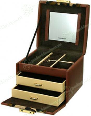 Шкатулка для драгоценностей, отделка кожа, с двумя выдвижными отделениями.
