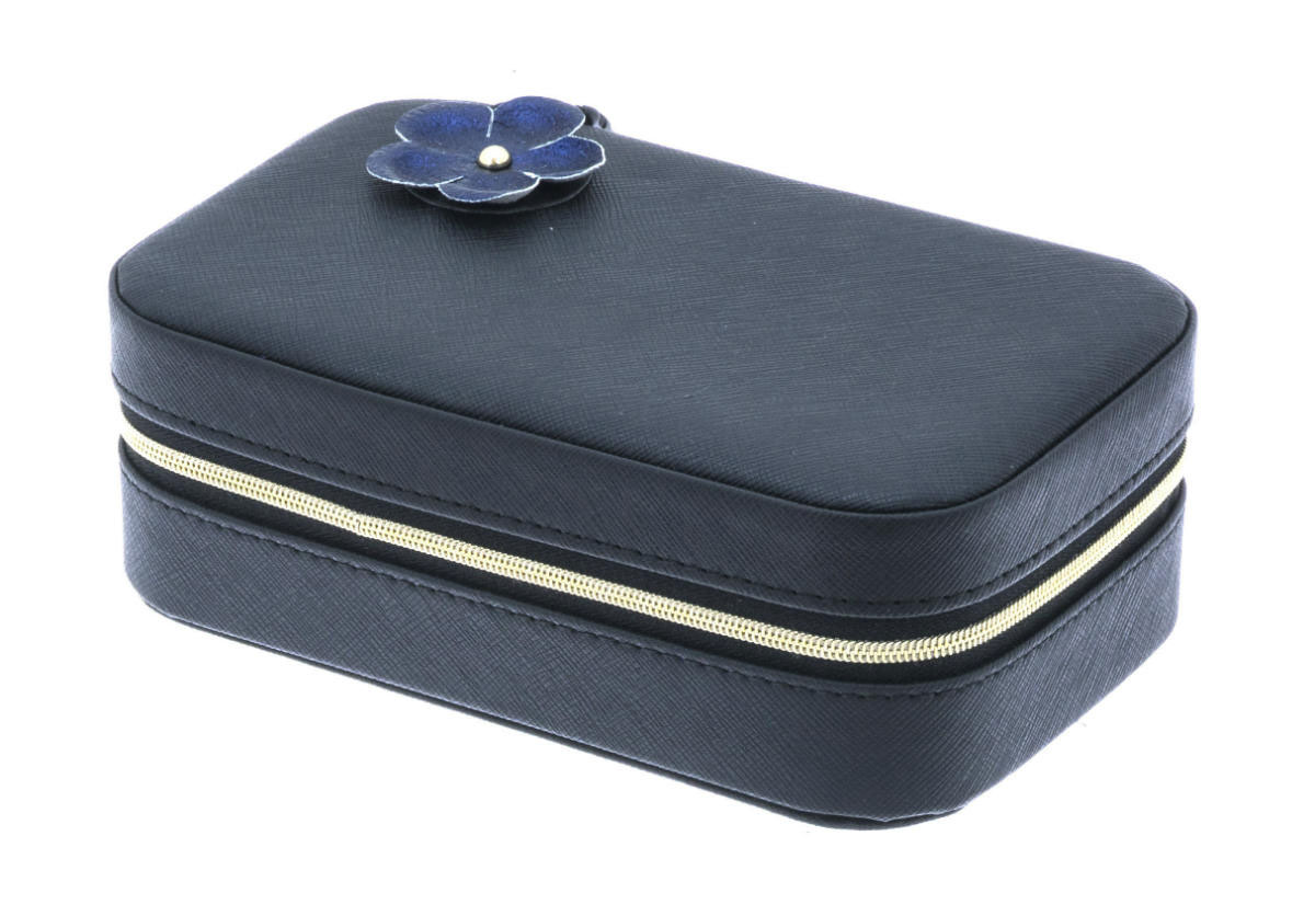 Внутри разделяется перегородкой между нижней и верхней частью. В нижней -отделение для хранения колец и перстней и универсальный отсек. Вверху - устройство для сережек и две универсальные секции.