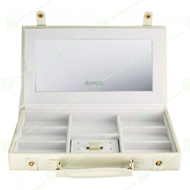 Кожаный чемоданчик кремового цвета с внутренней отделкой из светло-серого мягкого велюра.