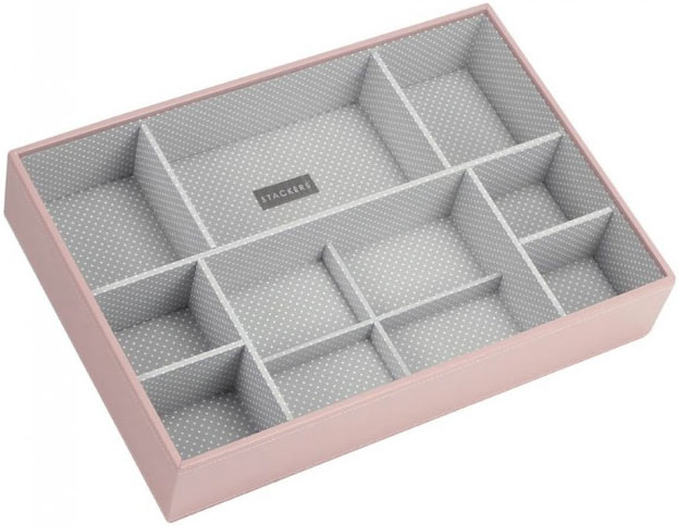 Глубокий лоток для хранения украшений Stackers от английской марки LC Designs выполнен из высококачественной экокожи розового цвета. Внутренняя отделка из хлопковой ткани светло-серого цвета в мелкий горошек.