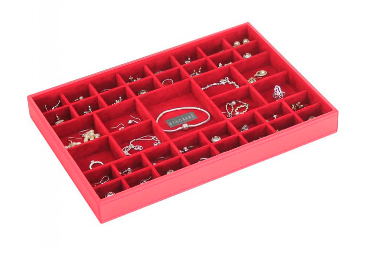 Лоток для хранения украшений Stackers от английской марки LC Designs выполнен из высококачественной экокожи красного цвета.