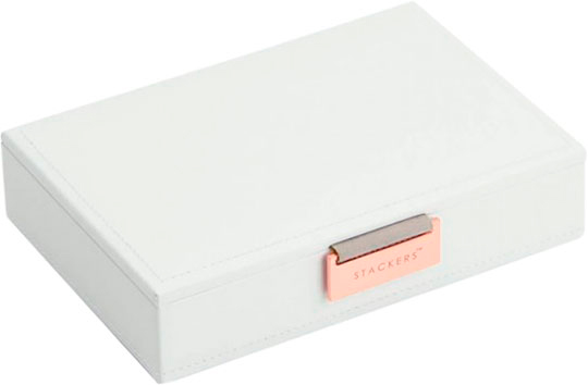 Небольшая классическая шкатулка для хранения украшений из лимитированной коллекции Stackers Rose Gold с внешней отделкой из экокожи белого цвета.