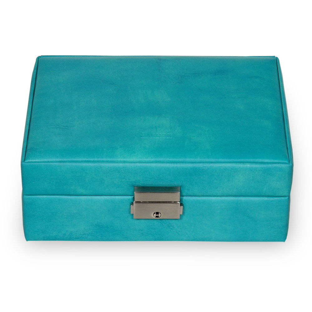 Шкатулка для хранения ювелирных украшений выполнена из натуральной кожи.