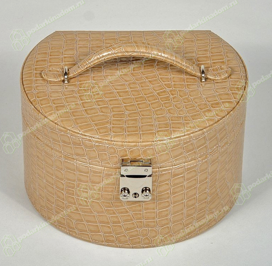 Глубокая шкатулка круглой формы с сепаратными верхними ящичками и дорожным етуи.
