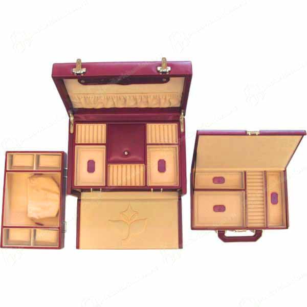 Шкатулка для украшений малинового цвета из натуральной кожи. С переносным кейсом для украшений.