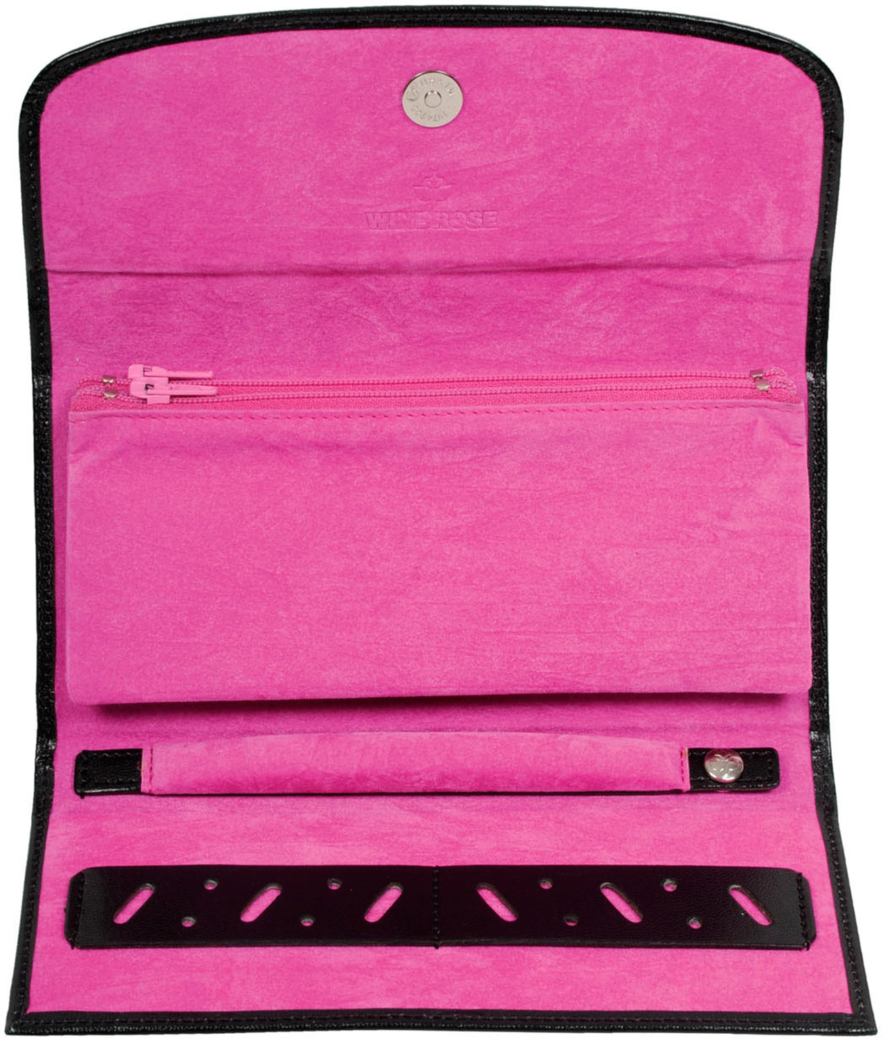 Дорожный вместительный клатч для ювелирных украшений выполнен из натуральной кожи.