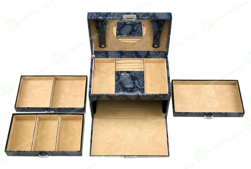 Изысканная шкатулка для ювелирных изделий, выполнена из высококачественной синтетической кожи с окрасом под кожу змеи синего цвета