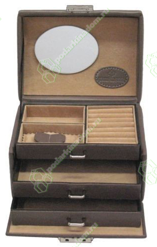 Шкатулка для украшений Windrose разделена на три отделения с отсеками для цепочек и колец. Имеется зеркало.