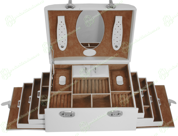 Шкатулка из прочной высококачественной синтетической кожи, выполнена в изящном белом цвете.