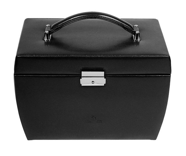 Шкатулка для украшений. Внутри основное отделение с валиками для колец и отсеками для аксессуаров. 3 выдвижных ящика с валиками для колец и отделениями для хранения украшений и аксессуаров. На верхней крышке зеркало и удобное крепление для сережек. Внутренняя отделка - бежевый велюр. Закрывается на ключ.