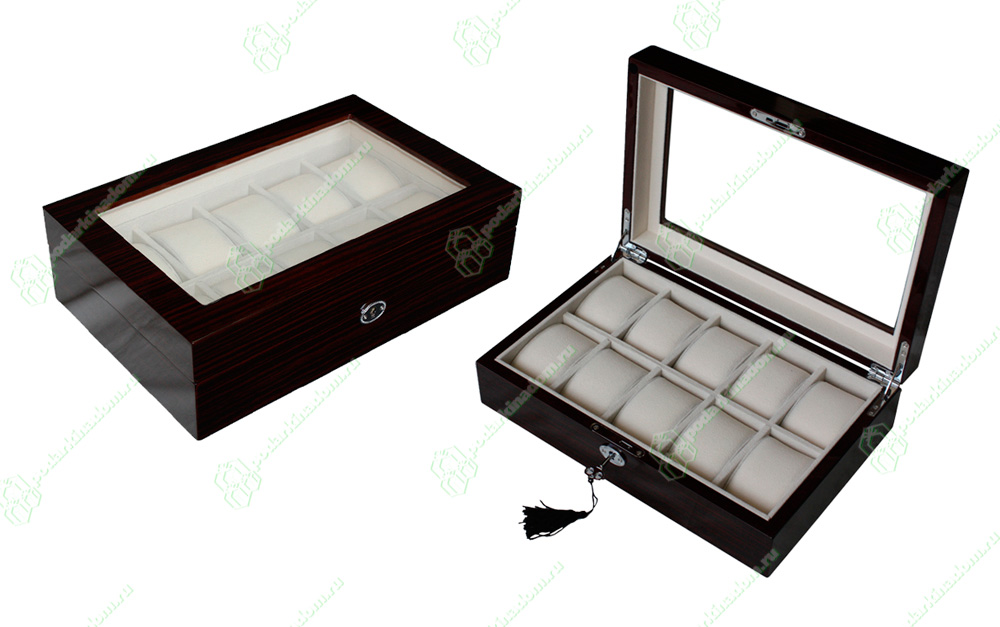 Шкатулка для хранения 10-ти наручных часов выполнена из натурального дерева