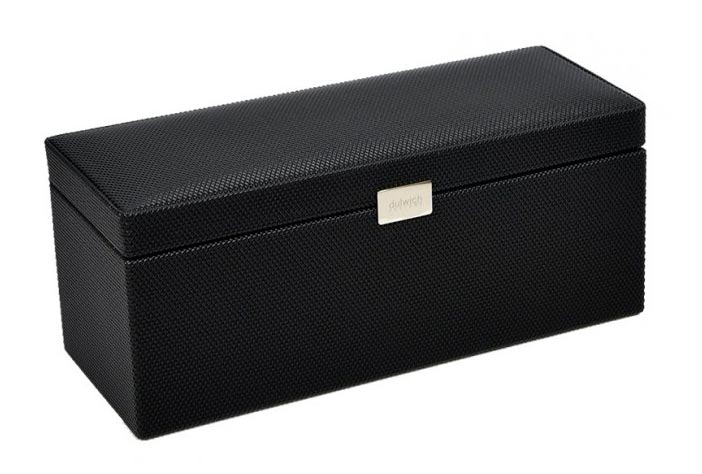 Шкатулка для хранения 3-х наручных часов, чёрного цвета. Отделка: кожзам.