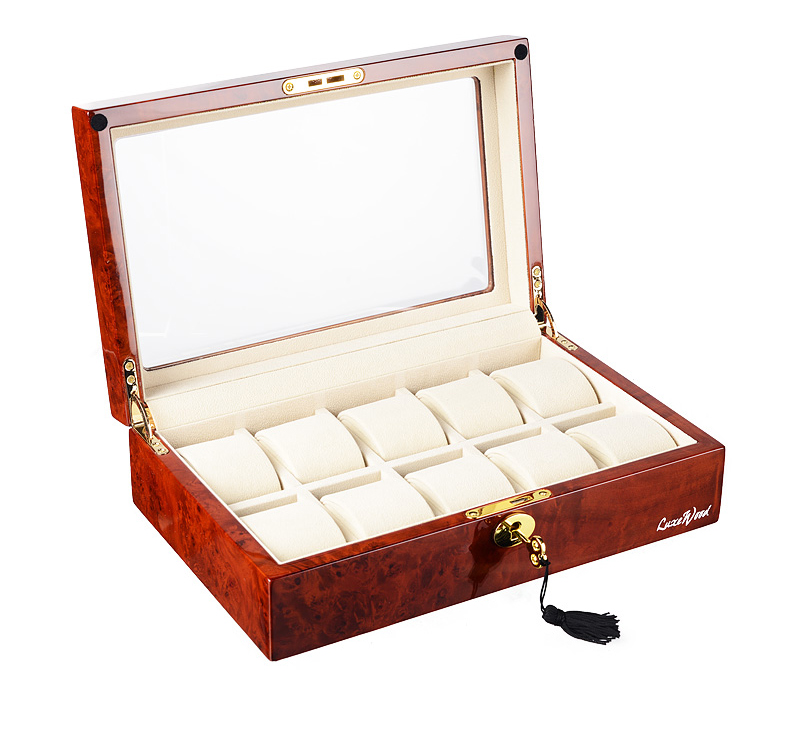 Деревянная шкатулка с внутренней отделкой из белой высококачественной синтетической кожи.
