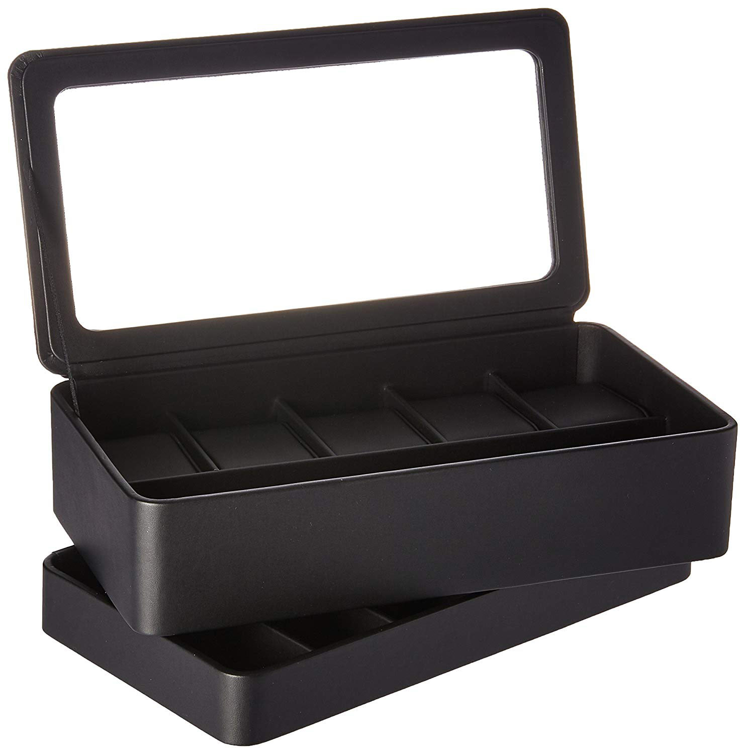 Футляр для хранения и зарядки часов со стеклянной крышкой. Внутри: 5 отделений для классических часов, отсек с зарядной станцией для Apple Watch и 6 отделений для хранения ремешков. Магнитный кабель для зарядки в комплект не входит.