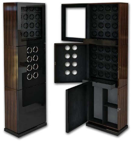 Шкаф для подзавода 32-х механических часов. Внешняя отделка дерево макасар. Отлично смотрится как в современном, так и в строгом, офисном интерьере