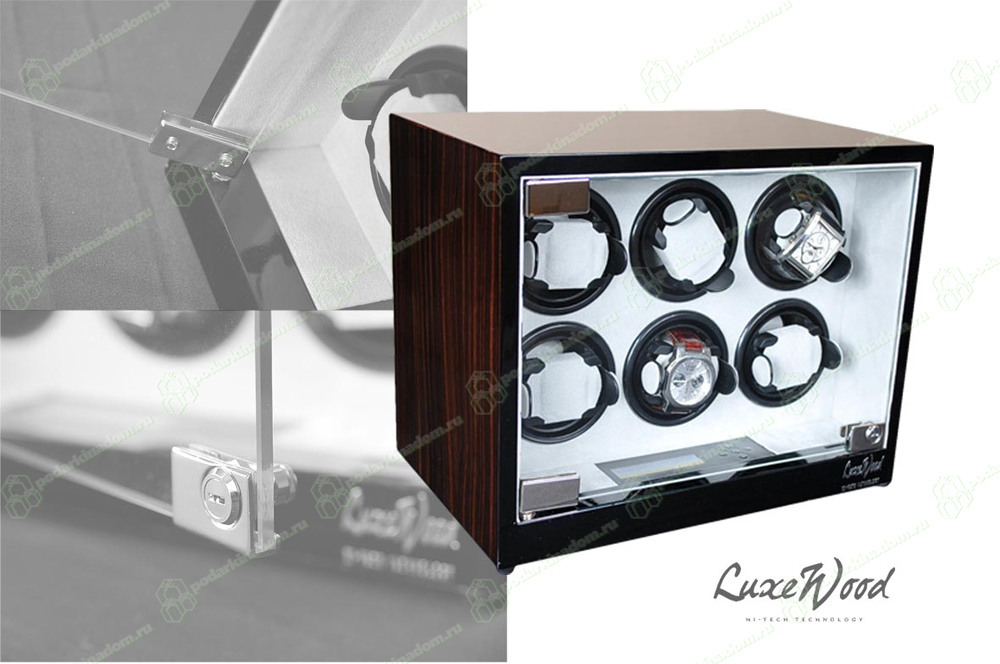 Шкатулка с подзаводом 6ти ручных часов, покрытая лаком и велюровой отделкой внутри,работает только от сети