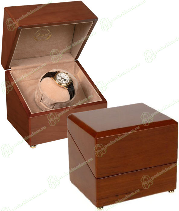 Шкатулка для часов с автоподзаводом Single Watch Winders. Выполнена из дерева "орех", покрыта несколькими слоями лака. Изнутри шкатулка отделана бежевым бархатом