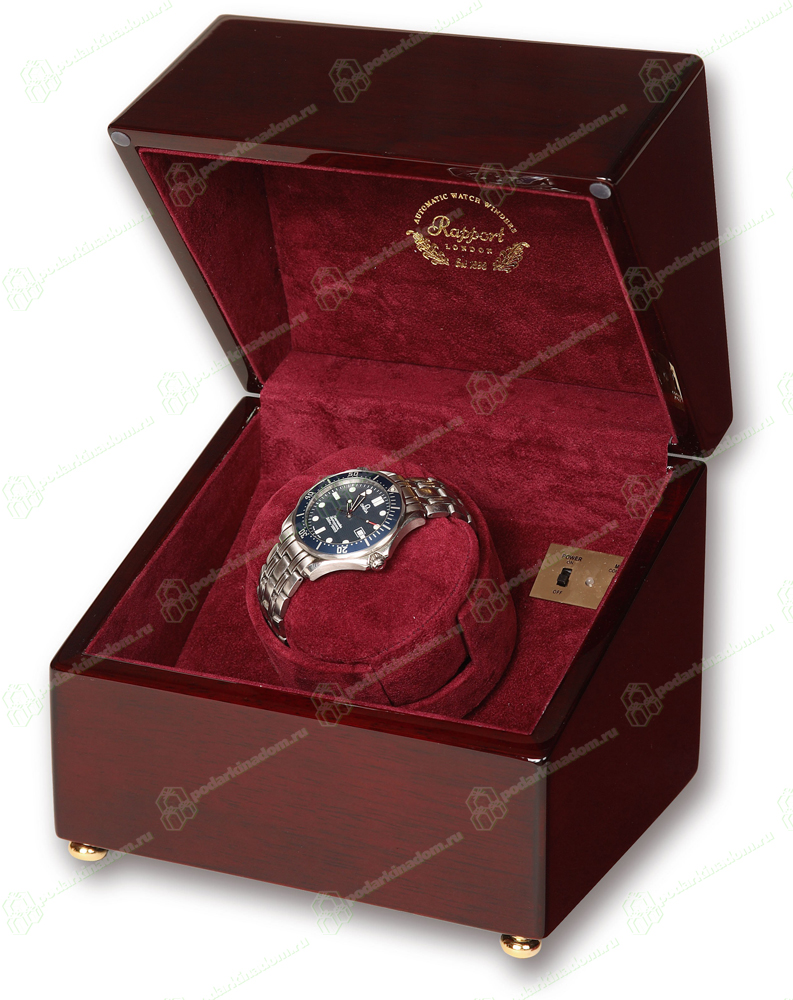 Деревянная шкатулка для часов с автоподзаводом Single Watch Winders, покрыта несколькими слоями лака. Изнутри шкатулка отделана бордовым бархатом