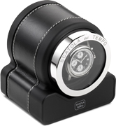 Шкатулка для подзавода 1-х часов с окошком и пластиком с отделкой из черной кожи от Scatola del Tempo.