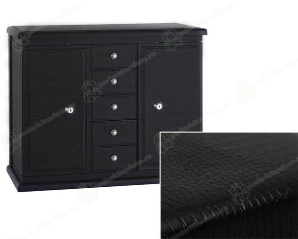 Футляр-коробка для часов и ювелирных изделий, пятиуровневая, кожа,тиснение крокодил, черный