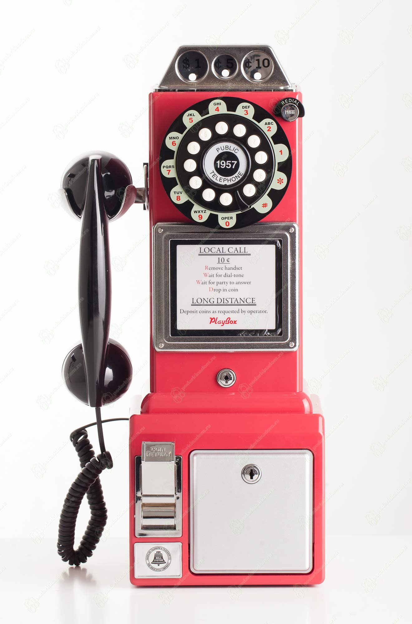 Ретро телефон в стиле 50-х годов с современным набором функций. Такие телефоны устанавливали в таксофонных будках США в середине прошлого столетия.
