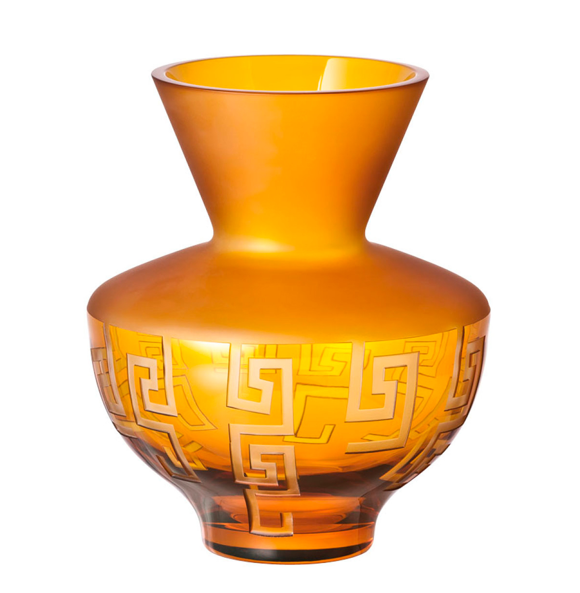 Оригинальная хрустальная ваза из коллекции Amber с геометрическим узором.