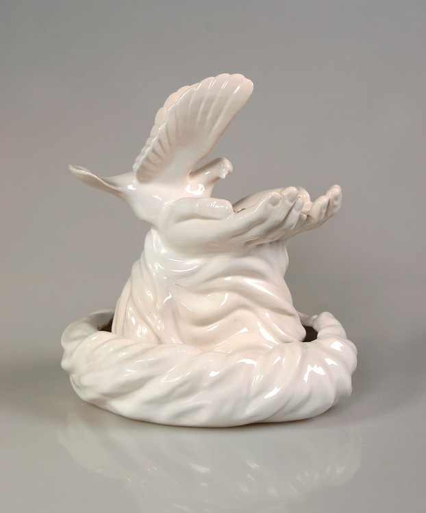 Большой настольный фонтан «Руки с голубем» со скульптурным изображением лежачего героя римской мифологии, сына богини Венеры