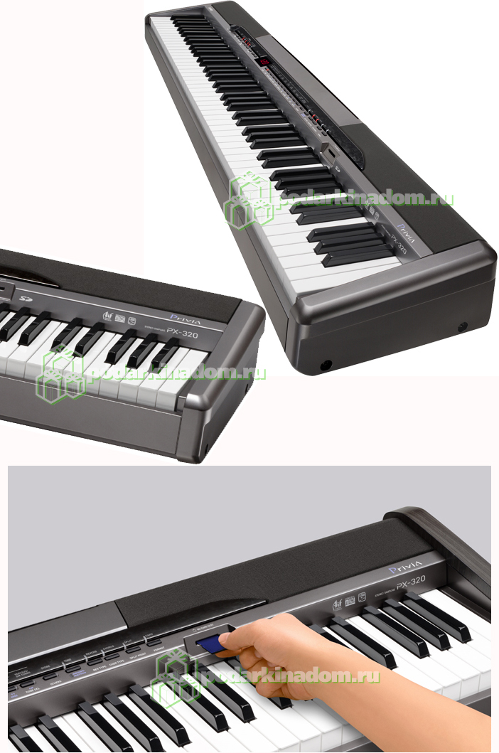 Электронное пианино Сasio Privia PX 320. 88 полноразмерных клавиш, регулируемый градиент жесткости, 128-нотная полифония, 64 уникальных тембра A.I.F. (с функциями наложения тембров/разделения клавиатуры)