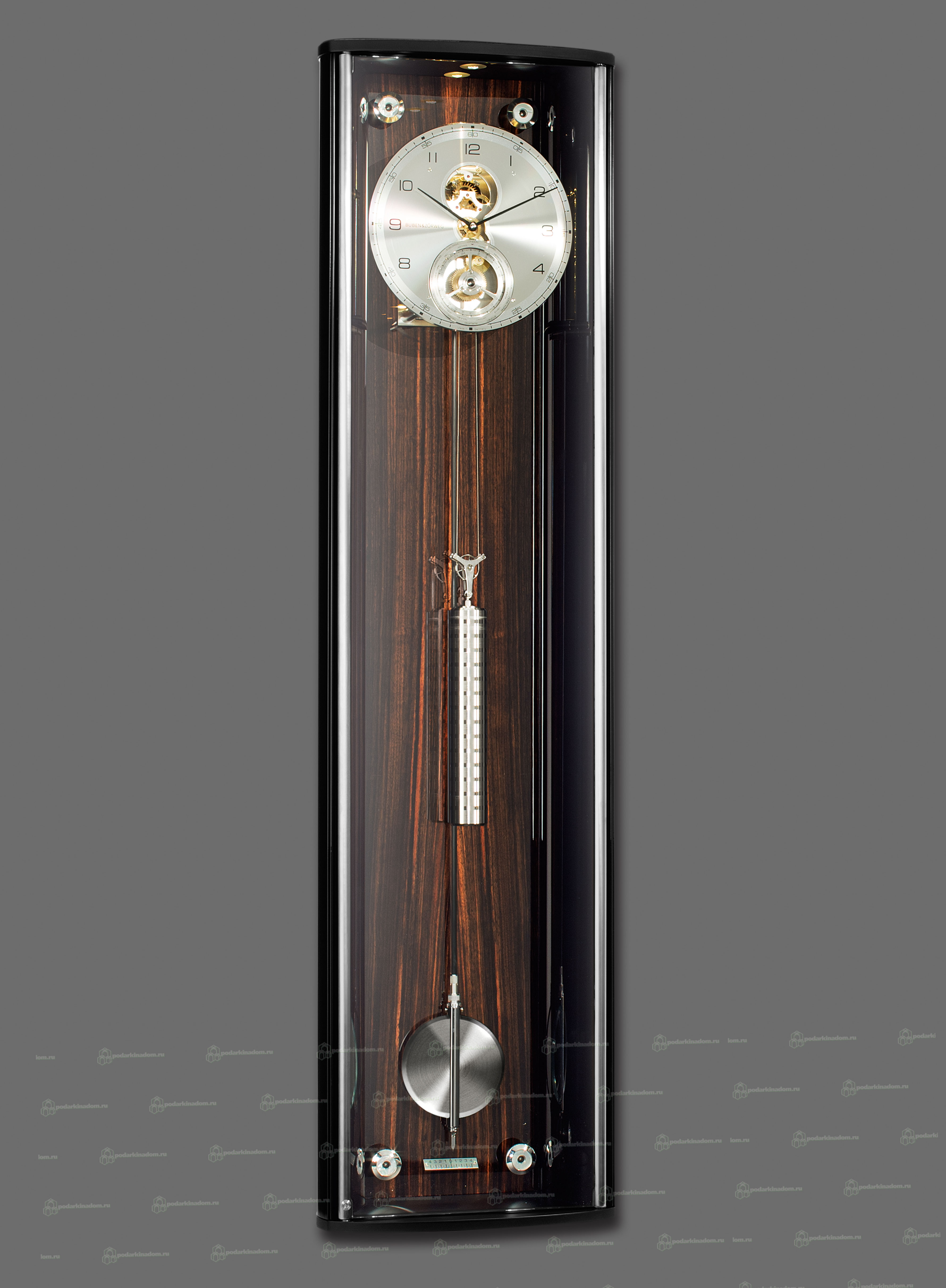 Эти настенные часы поистине внушительных размеров — шедевр ручной работы немецких мастеров. От их уверенного облика веет прозрачностью и легкостью, и они спокойно замыкают круг инновационных технологий и точности. Ничто не закрывает поразительный вид уникального часового механизма Alpha 01 — Pendulum World Time, ничто не мешает гордому обладателю погрузиться в умиротворение, которое дарят колебания маятника, и наслаждаться своими роскошными часами