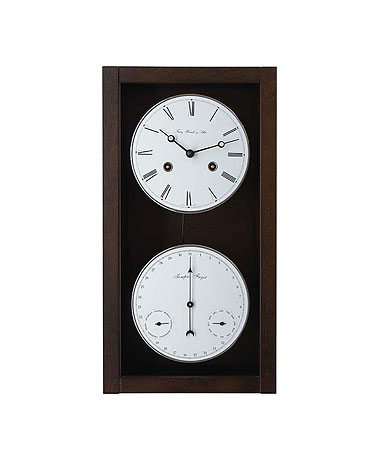 Настенные часы с двумя циферблатами. Верхний классический с часовой и минутной стрелкой, а нижний с указателем числа, недели, месяца.