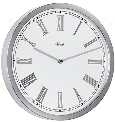 Настенные часы в алюминиевом корпусе с римскими цифрами.