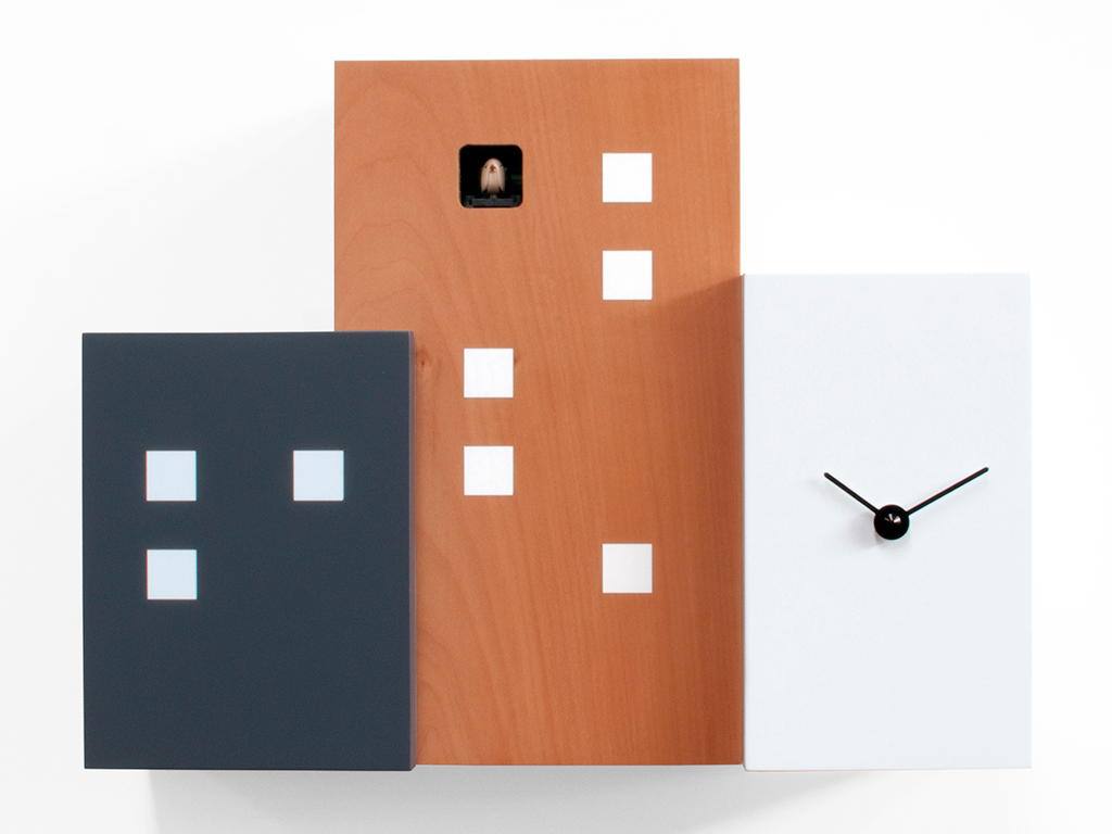 Дизайнерские часы "Wall Cu-Сu" от известного итальянского производителя Progetti благодаря трем объемам разной высоты и глубины, создают пейзаж современного города