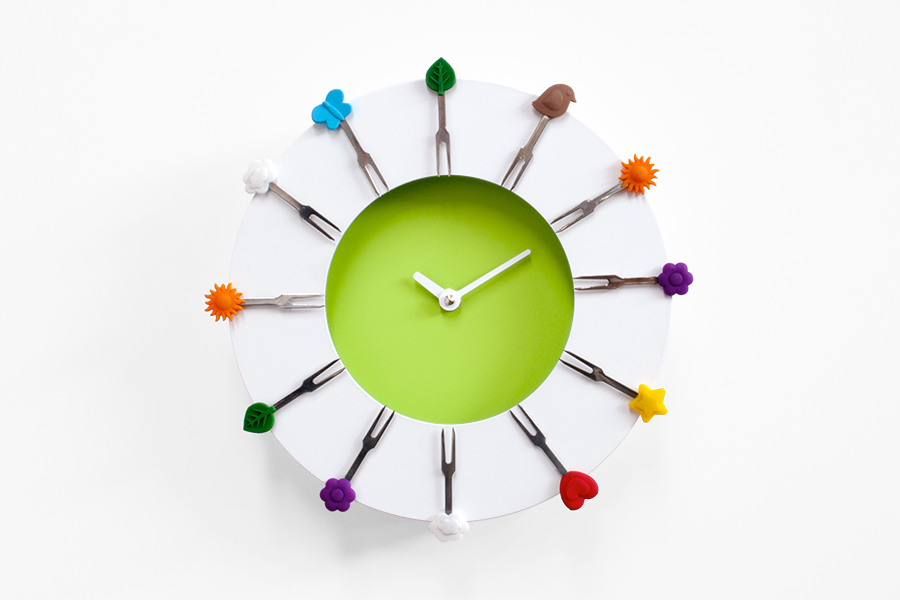 На белый и магнитный внешний диск можно прикрепить любые металлические объекты. Эта особенность делает каждый Бублик уникальным. Все, даже детей, могут создавать свои собственные часы, веселиться, создавая бесконечные различные комбинации, которые отличаются в зависимости от сезона или места, где часы расположены - в кухне, в гостиной, в кабинете, в спальне, и т.д. Вы также можете создать свою копилку прикрепляя скрепки, формочки, заколки для волос и многое другое, раскрывая свой творческий потенциал в любой момент времени. Металлический циферблат часов магнитный и всегда белого цвета. Внутреннее поле часов сделано из пластика и дерева, может быть розового или зеленого цвета. Аккумулятор с кварцевым механизмом. (Украшения, показанные на фотографиях, не включены в комплектацию часов).