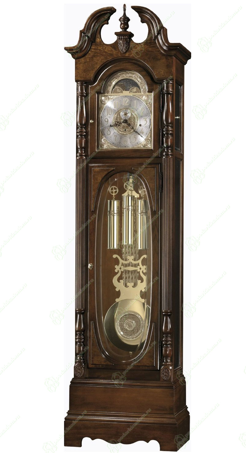 Искусно выточенные каннелированные колонны с классическими капителями и резными овальными украшениями подчеркивают силуэт часов. Многоярусное основание корпуса дополняет фигурная резьба.