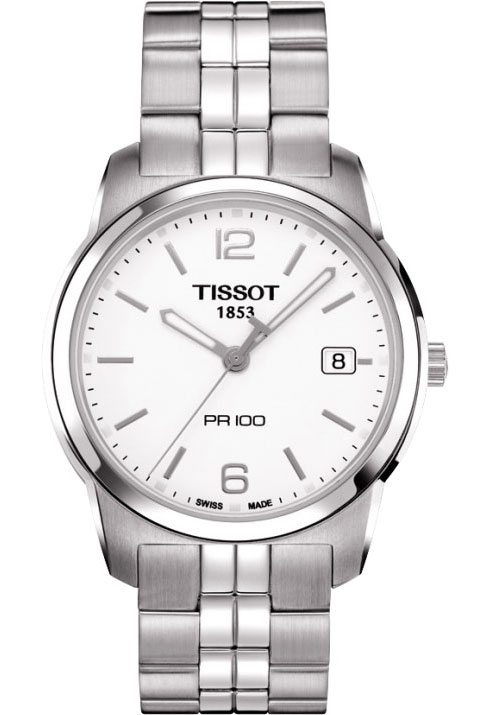 Швейцарские мужские наручные часы полностью выполнены из нержавеющей стали с белым циферблатом и окошком даты.