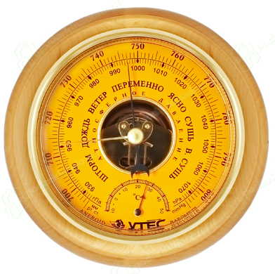 Барометр для измерения атмосферного давления и температуры внутри помещения. Полностью механический и не содержит вредных для здоровья веществ (ртуть и прочее)