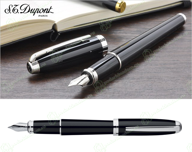 Классическая перьевая ручка OLYMPIO Medium с палладиевой отделкой покрытая черным лаком